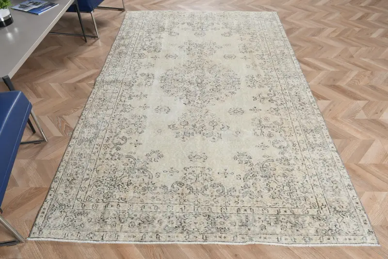 Eleganter beigefarbener Blumenteppich, 1,5 x 2,4 m, schickes Dekor