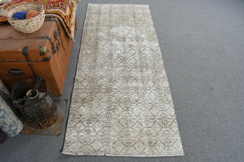 Eleganter beigefarbener Blumenteppich, 2,6 x 6,3 Fuß, schickes Dekor