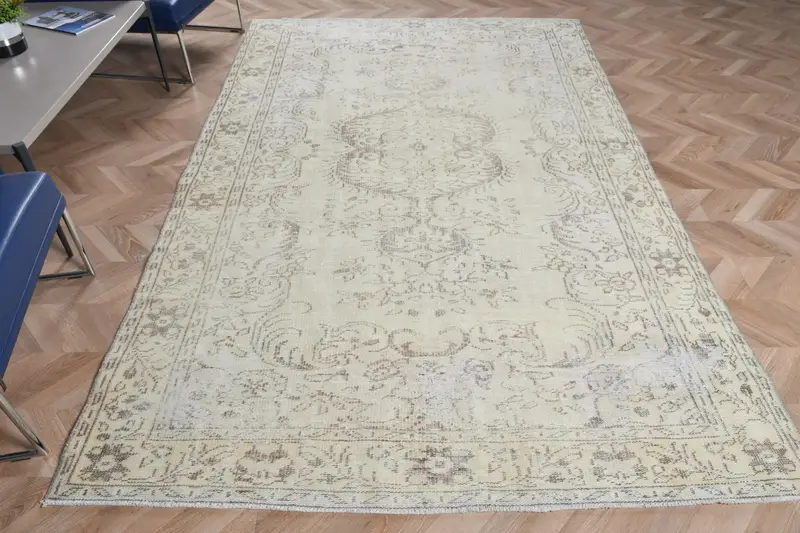 Eleganter beiger Perserteppich, 5,9 x 9,7 Fuß mit braunen Akzenten