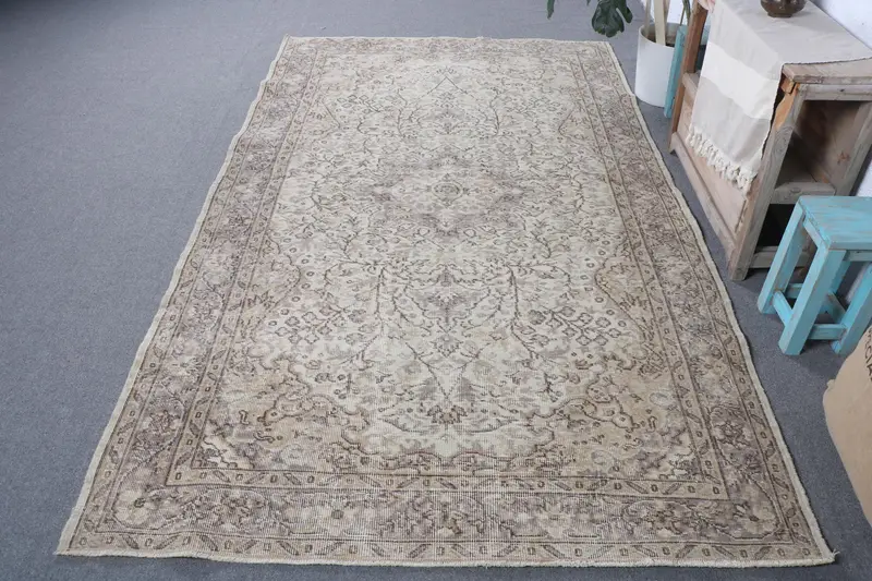 Eleganter beigefarbener Südwestteppich, 5,2 x 8,7 Fuß, schickes Dekor