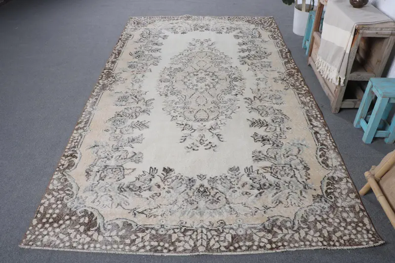 Eleganter beiger Perserteppich, 5,5 x 9,8 Fuß mit braunen Akzenten