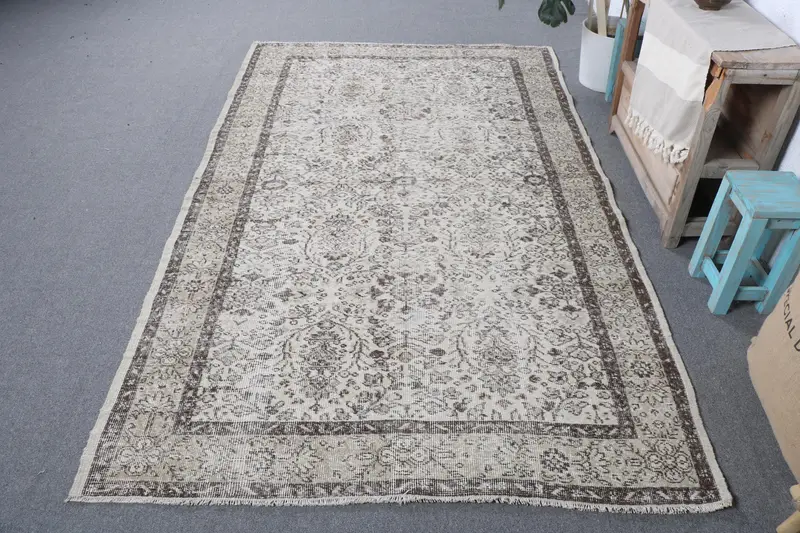 Eleganter beige-brauner Karoteppich, 4,9 x 8,1 Fuß