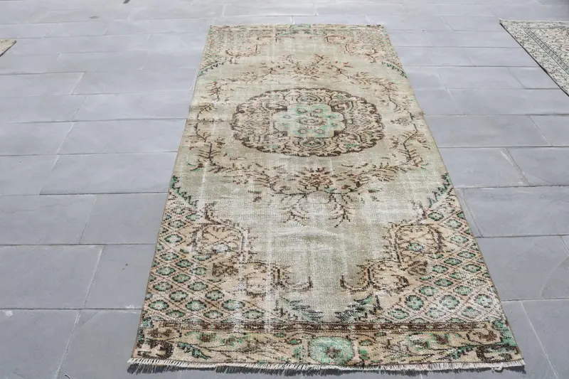 Eleganter beigefarbener Ikat-Teppich, 4,1 x 9 Fuß, schicke Heimdekoration