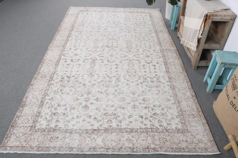 Eleganter beige-brauner Blumenteppich, 5,2 x 9 Fuß, schickes Dekor