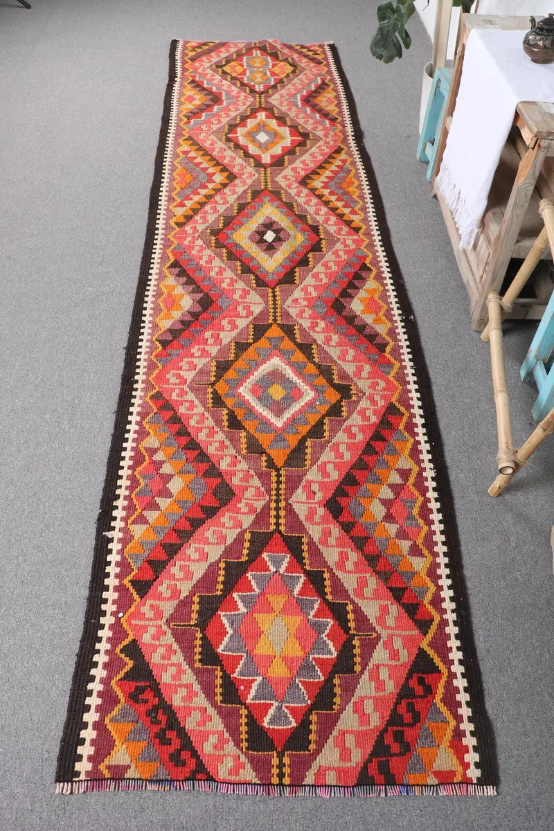 Rosa abstrakter Teppich, 2,7x10,9 Fuß, elegantes Dekor