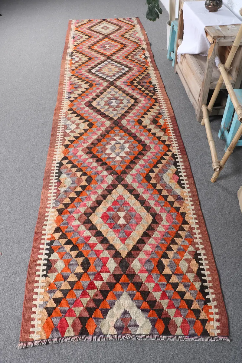 Eleganter rosafarbener Orientteppich, 3 x 11,6 Fuß, schicke Heimdekoration