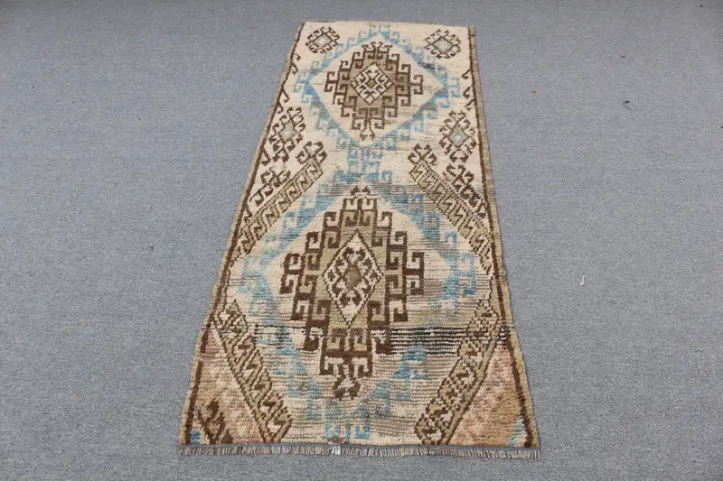 Brauner Orientteppich, 6,4 x 6,36 Fuß, blaue Akzente