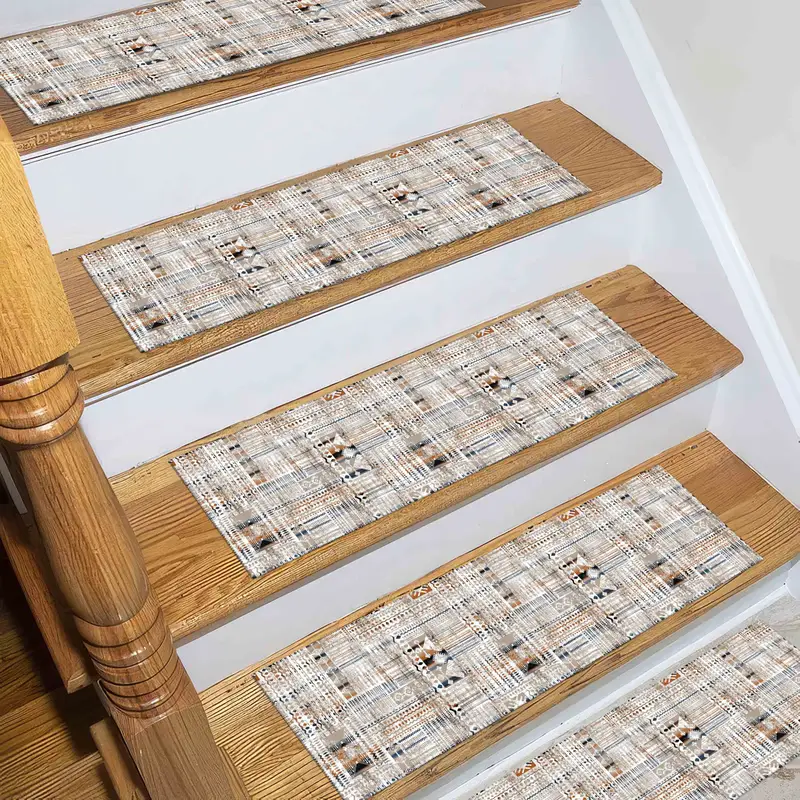 Beigefarbener Kelim-Teppich mit ethnischem Muster, bedruckt, Bohemian-Design