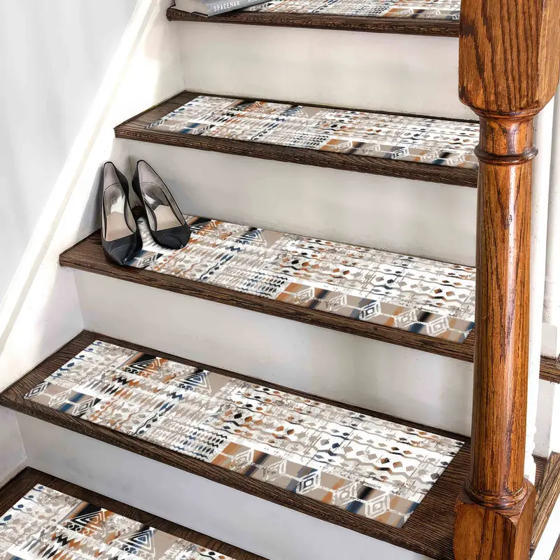 Beiger ethnischer Kelim-Teppich mit Bedruckung: Böhmischer Stufenteppich, trendiges Design