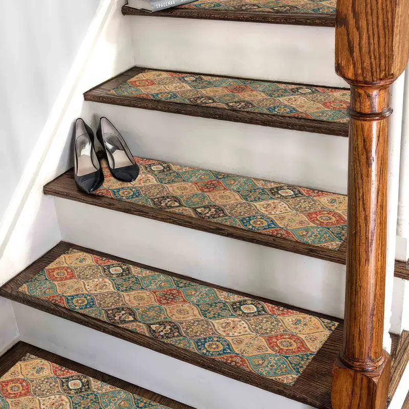 Bedruckter Teppich mit ethnischem Muster in Beige – Stufenteppich mit Kelim-Design