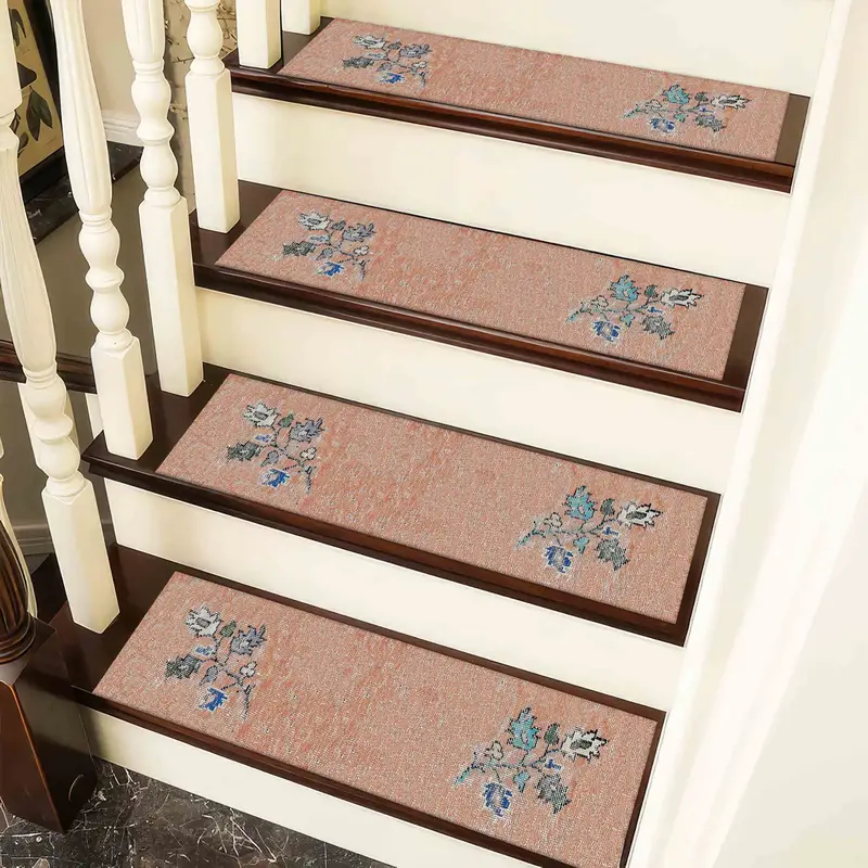 Bedruckter Teppich mit beigem Blumen-Kelim-Design – Stufenteppich