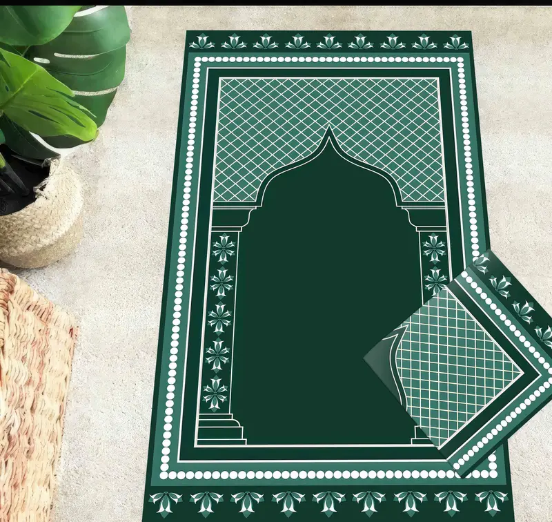 Teppich mit grünem Blumenmuster: Weiße Gebetsmatte für spirituelle Anbetung