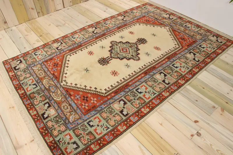 4,8x7,5 ft Vintage Teppich, Teppich, roter Blumenteppich aus Wolle
