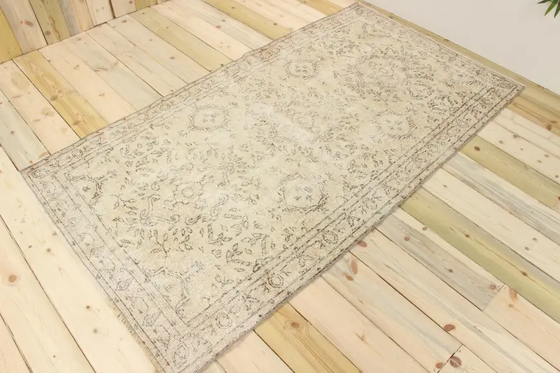 Vintage-Teppich 3,8 x 6,9 Fuß, grau-weißer türkischer Teppich aus persischer Wolle