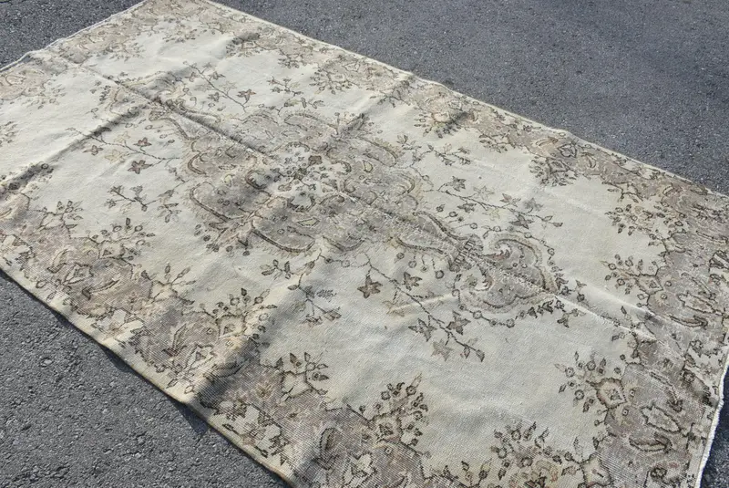 Türkischer großer Teppich 5,2 x 9,4 Fuß, Vintage-Wollteppich mit grauem Blumenmuster