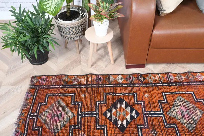 Türkischer Vintage-Teppich, 79 x 274 cm, orangefarbener Wollteppich