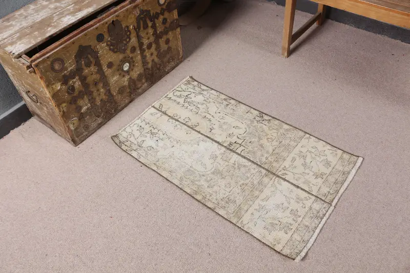 1,8x3,2 ft kleiner türkischer Teppich, Vintage-Teppich mit weißem Rand