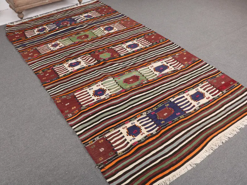 4,9x9,3 ft Teppich, Vintage Kelim Teppich, türkischer brauner Perserteppich aus Wolle