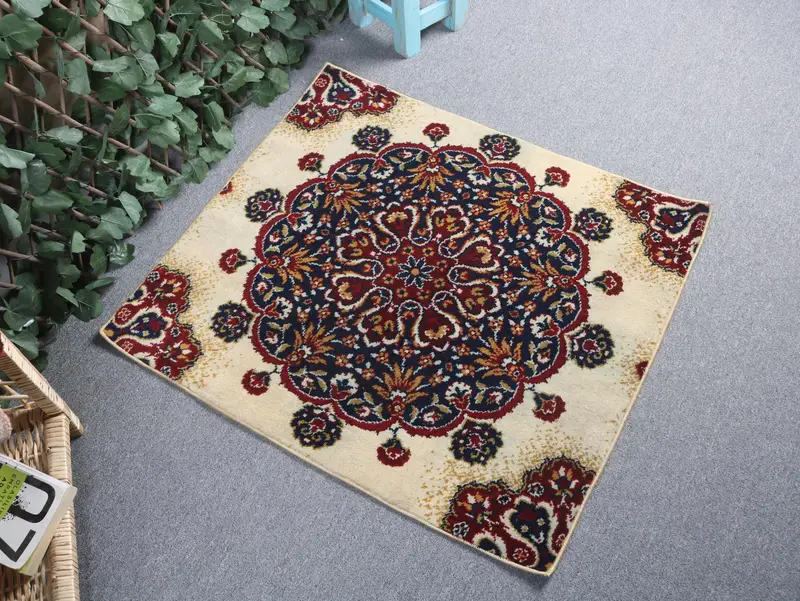 Türkischer Vintage kleiner Teppich 2,6x3 ft, rot-blauer Patchwork-Teppich