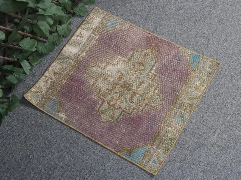 Vintage Teppich, 1,6x1,8 ft kleiner Teppich, rot-blauer Wollteppich