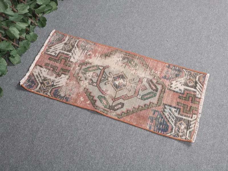 Vintage 1,2x2,7 ft Teppich, kleiner türkischer Teppich, rot-blauer Ikat-Wollteppich