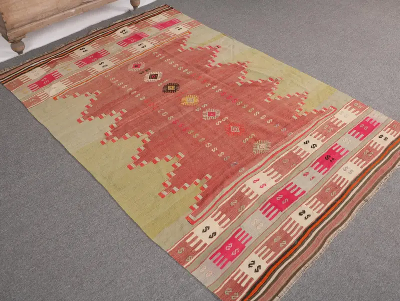 4,6x6,6 ft Teppich, türkischer Vintage-Teppich, roter Kelim-Wollteppich