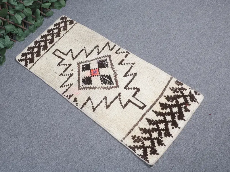 Türkischer Teppich, 1,5x3,5 ft Vintage Teppich, weiß brauner floraler Wollteppich
