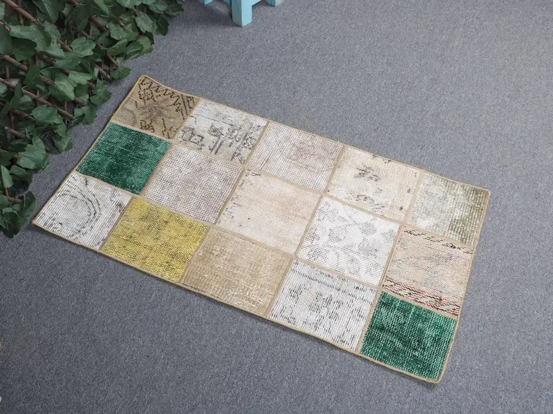 Vintage Kleiner Teppich 1,7x3,3 ft, grüner persischer türkischer Wollteppich