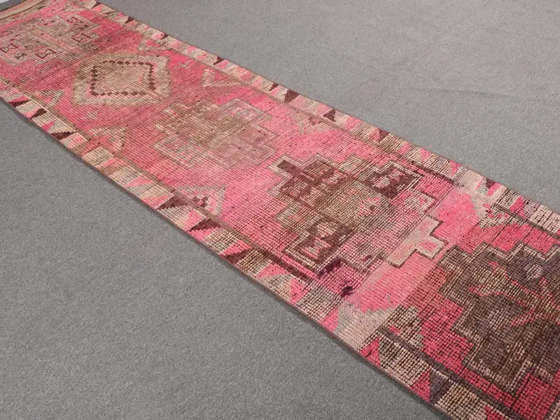 Türkischer Vintage-Teppich, 79 x 317 cm, Herki-Rosa-Braun-Perserteppich