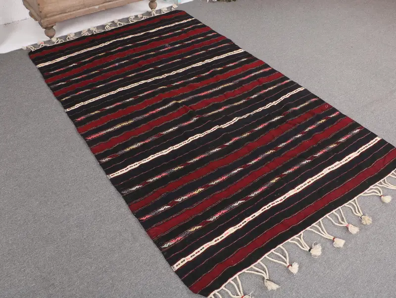 4,5x7,5 ft Teppich, türkischer Vintage Teppich, Kelim rot karierter Teppich