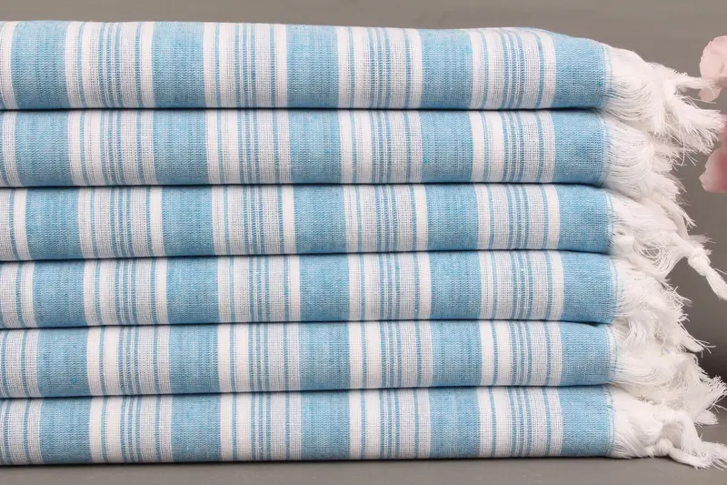 Bio-Strandtuch, personalisierte türkische Baumwolle, blaue Streifen, 40 x 71 Zoll