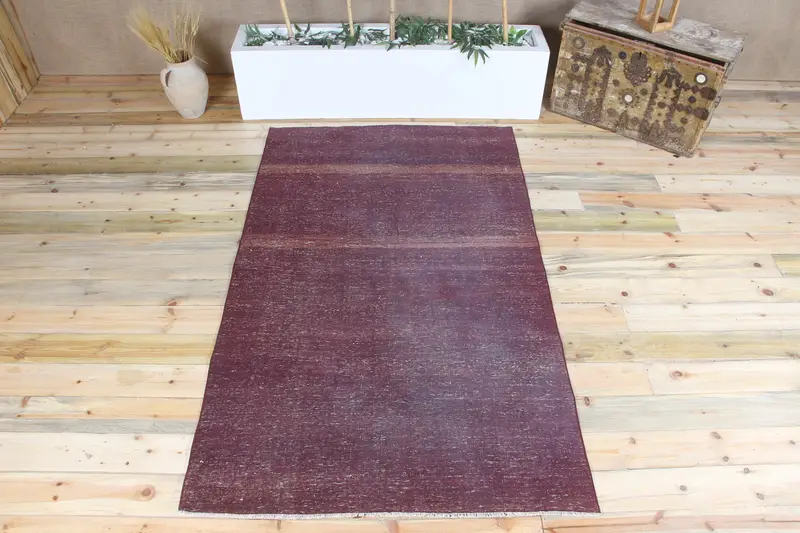 Türkischer 4,2x6,9 ft Teppich, Vintage-Teppich, lila massiver Teppich
