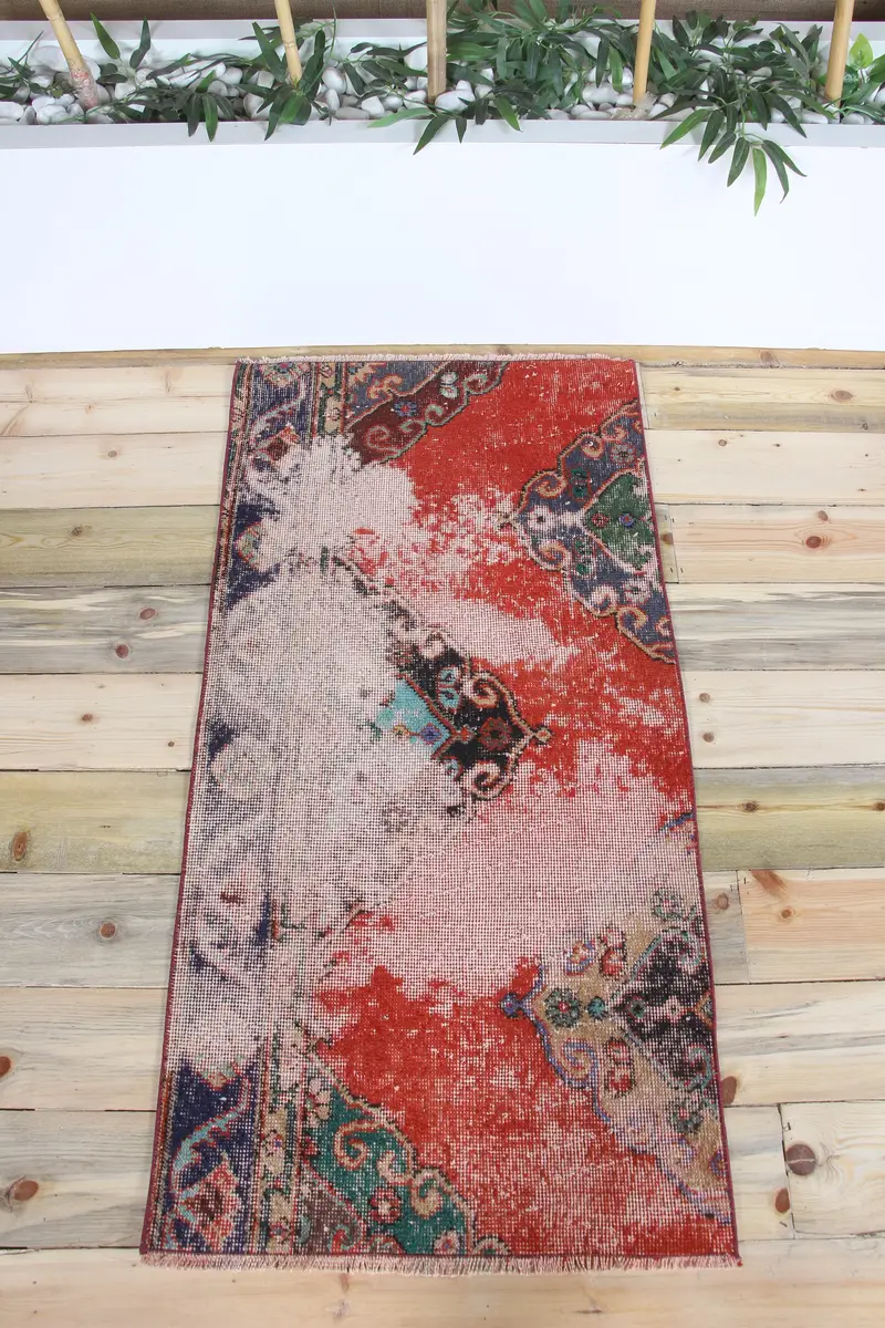 Türkischer Vintage-Teppich, 6,3 x 1,2 m, roter kleiner geometrischer Wollteppich
