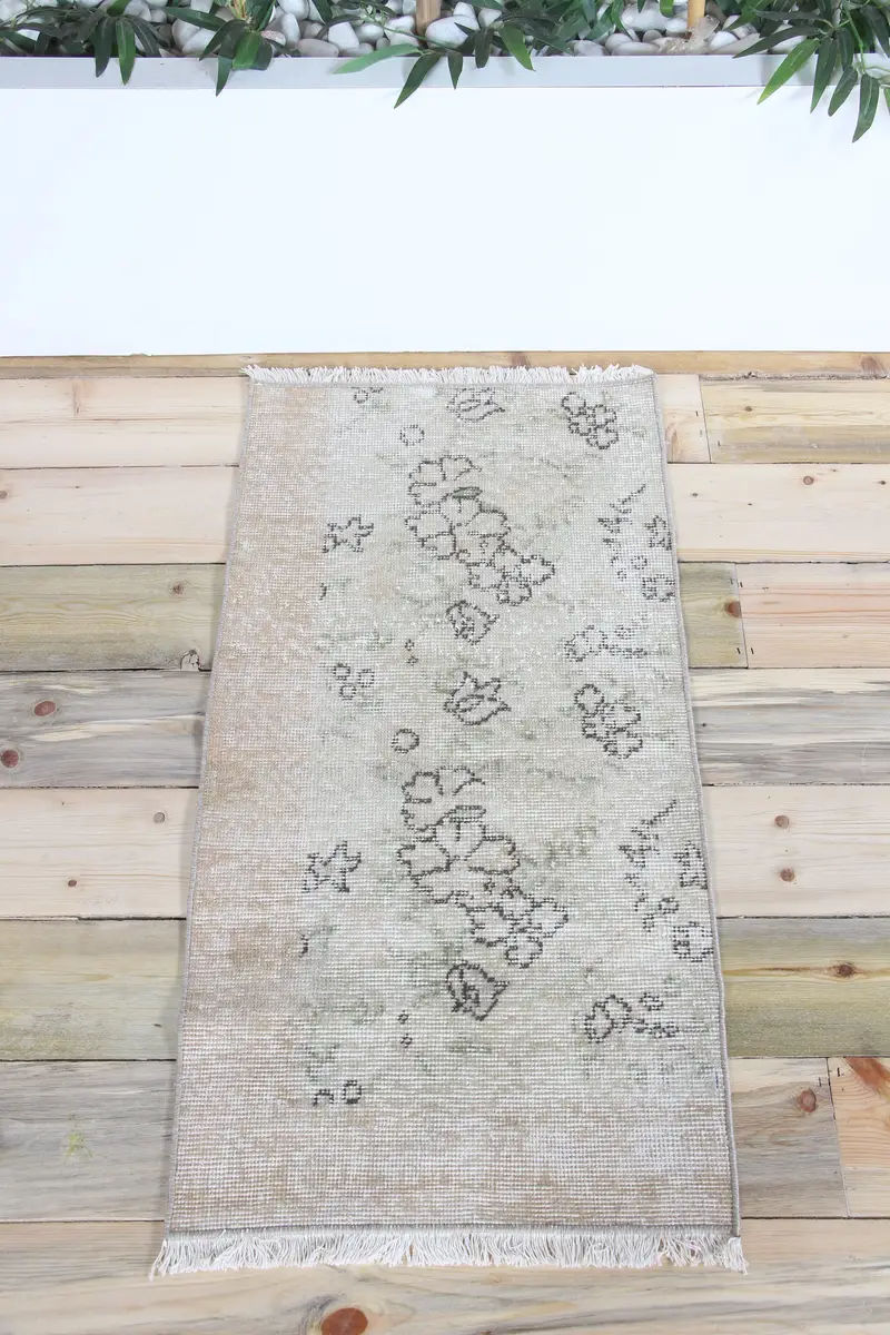 Vintage türkischer Teppich 1,7x3,3 ft (52x100 cm), Teppich grüner Blumenteppich