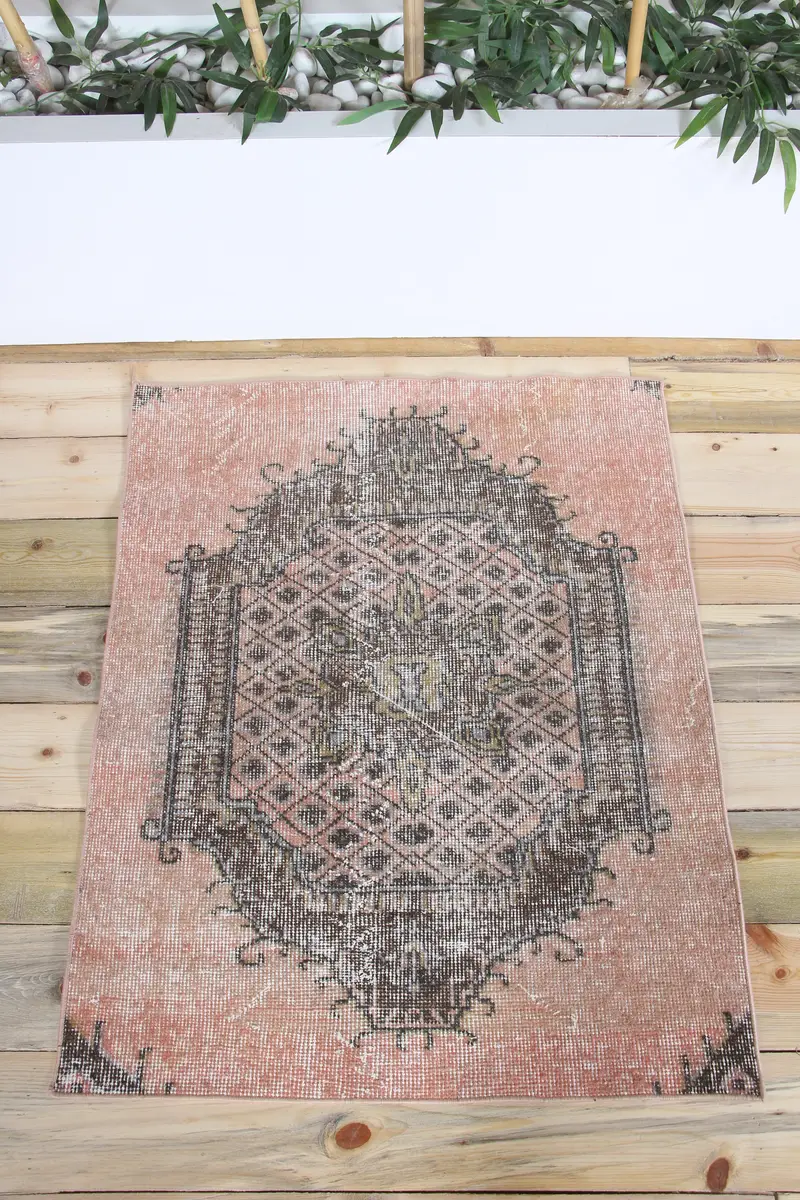 Türkischer Teppich, kleiner Teppich, 80 x 102 cm, Vintage-Rosa-Blumenteppich