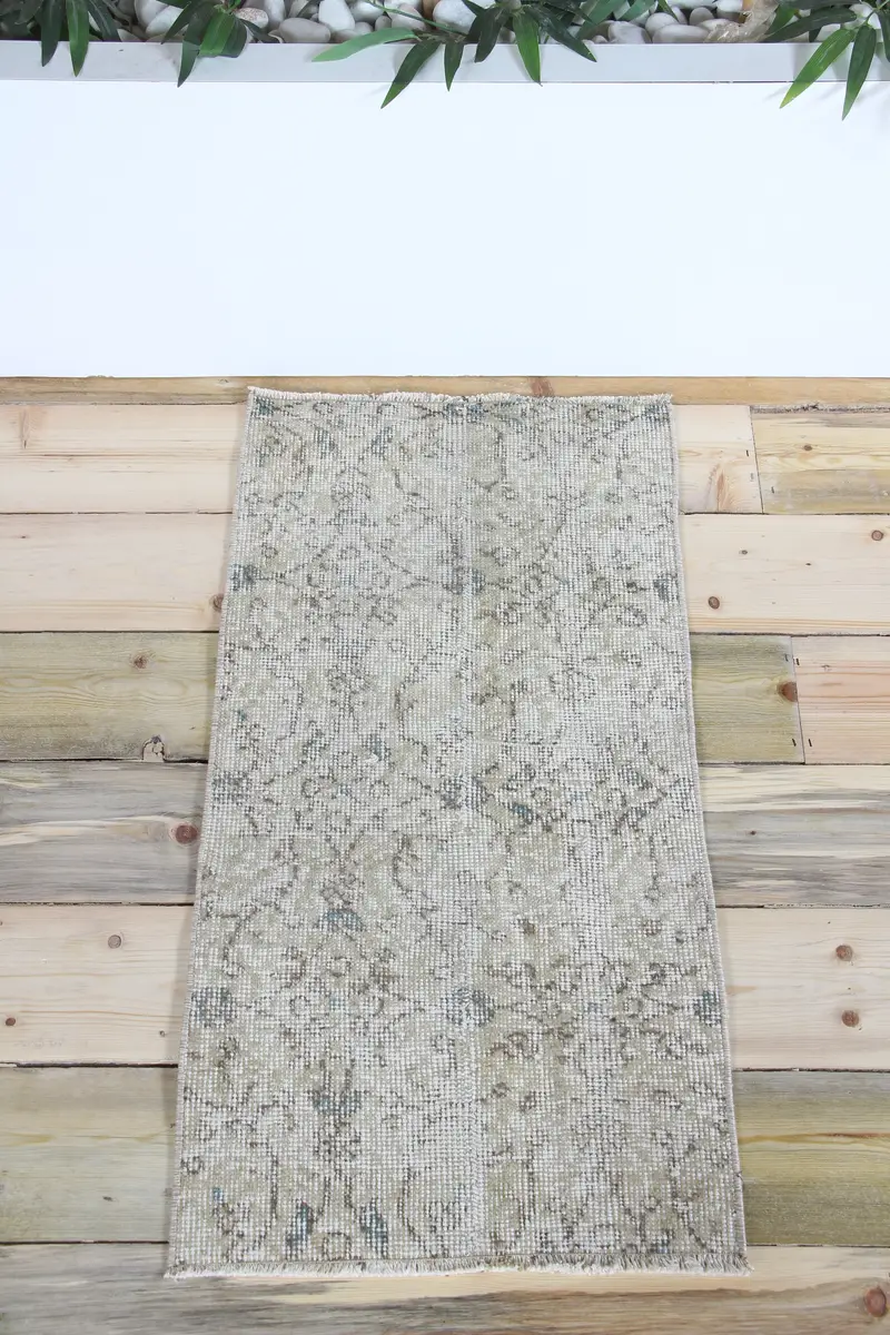 Vintage Teppich Kleiner Teppich 1,5x2,9 ft (46x89 cm), türkischer Beige Blumenteppich