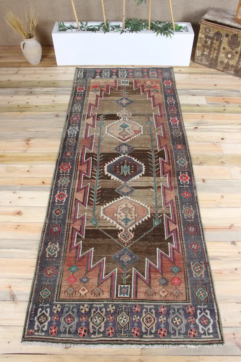 3,8x9,6 ft türkischer Teppich, Teppich, brauner geometrischer Teppich aus Wolle