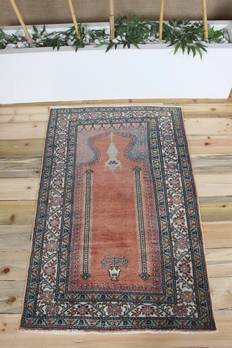 Türkischer Teppich, 2,8x4,4 ft Vintage Teppich, orange grüner floraler Wollteppich