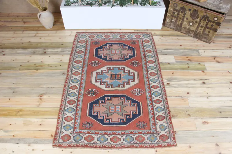 4,1x6,1 ft Teppich, türkischer Vintage Teppich, roter Teppich Wollteppich