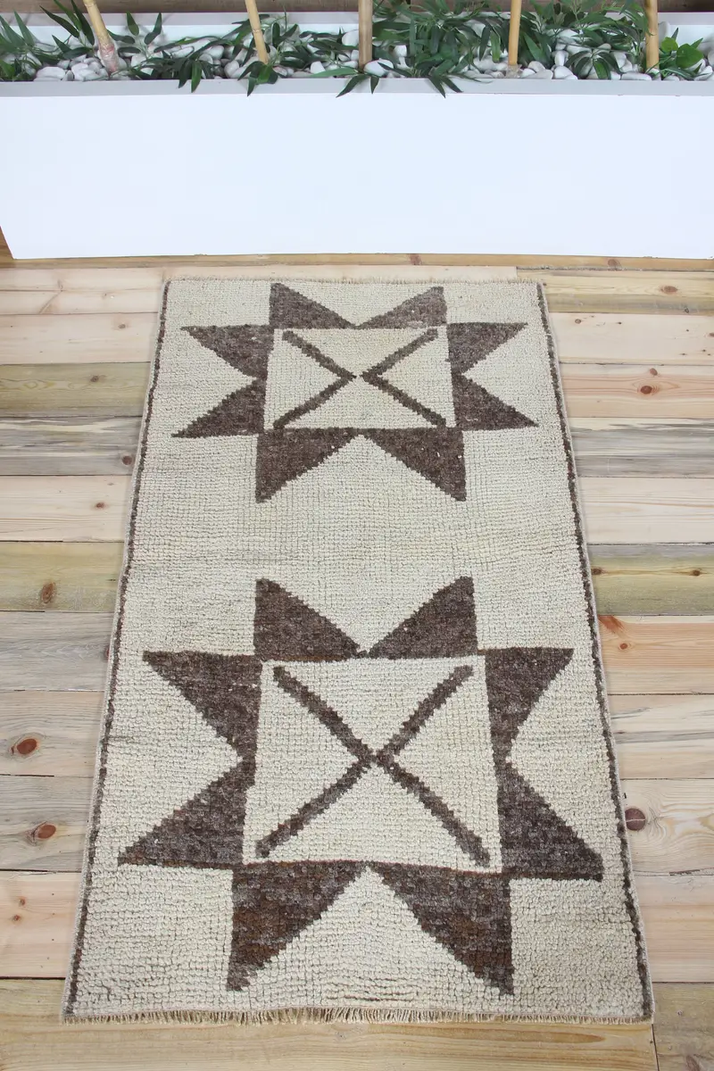 2,6x4,7 ft türkischer Teppich, kleiner Vintage Teppich, beige geometrischer Teppich