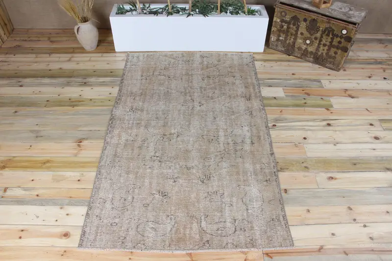 Türkischer 4,2x7,1 ft Teppich, Teppich Vintage Teppich, brauner Wollteppich mit Blumenmuster