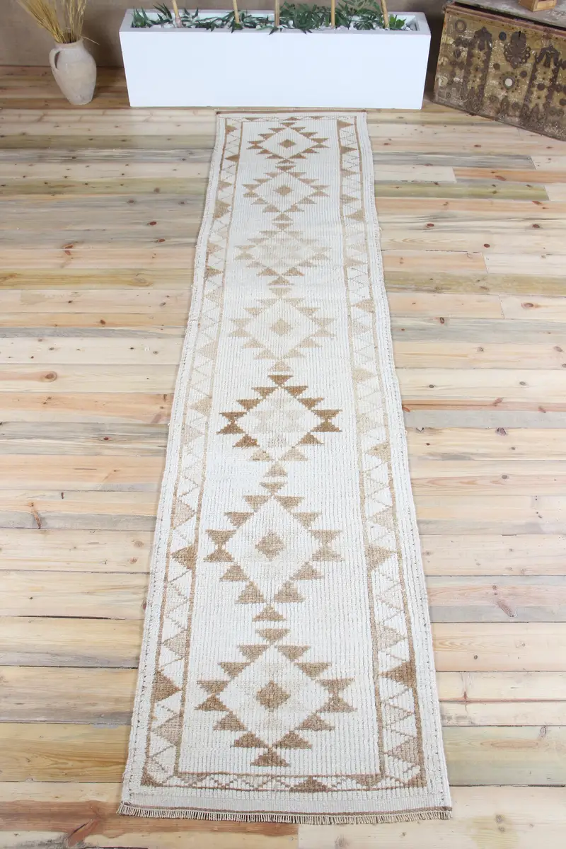 Türkischer Vintage-Teppich 2,5x11,4 ft (77x348 cm), Herki Beige Geometrischer Teppich