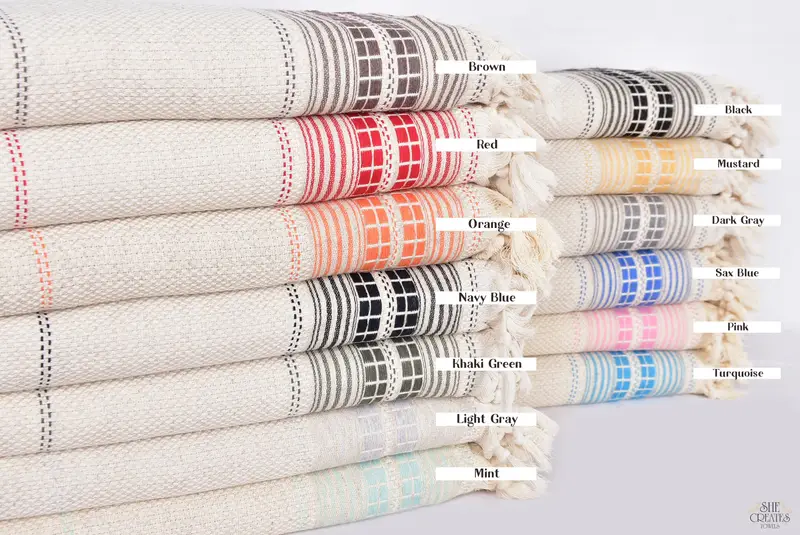 Maßgeschneiderte gestreifte beige Leinendecke, 93 x 95 Zoll, türkischer Überwurf