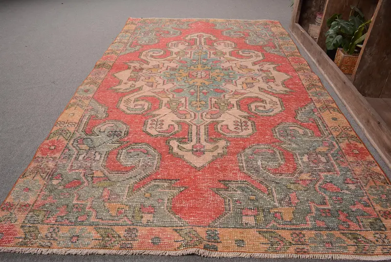 Vintage-Teppich, 130 x 220 cm, türkischer Teppich mit rotem Tiermuster