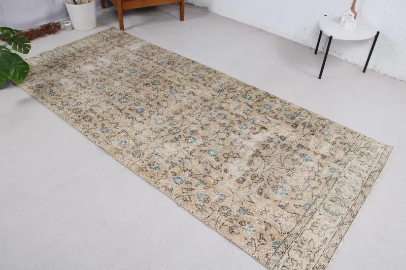 Türkischer Teppich 3,8 x 8,8 Fuß, blaubrauner Ombré-Teppich aus Wolle