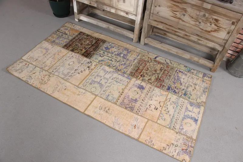 3x5,4 ft Akzent-Vintage-Teppich, braun karierter türkischer Teppich