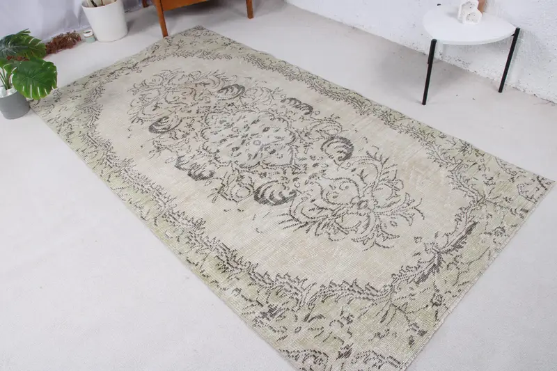 4,3x8,1 ft Teppich, türkischer Vintage-Teppich, Teppich mit grünen Pflanzen und Bäumen