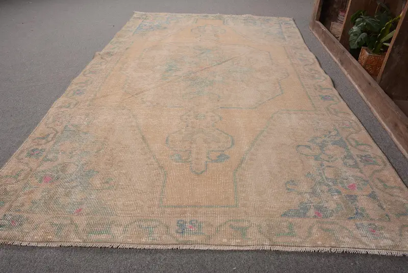 Vintage türkischer Teppich 4,5x7,1 Fuß, brauner Wollteppich