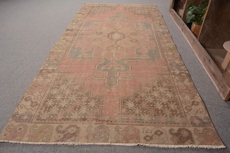 Türkischer 3,5 x 8 Fuß großer Teppich, Vintage-Teppich, rot gepunkteter Teppich