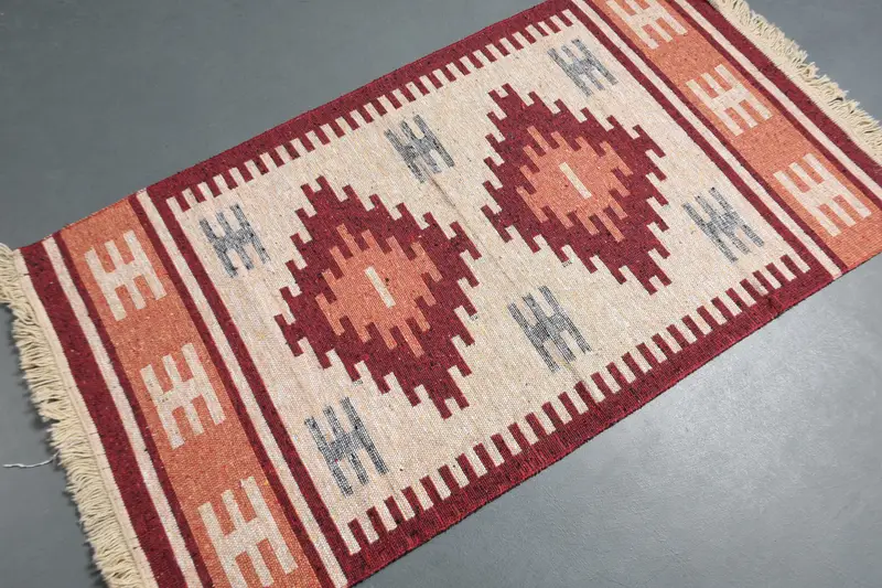 2,5x4,5 ft türkischer Teppich, kleiner Vintage Teppich, rotbeiger marokkanischer Teppich